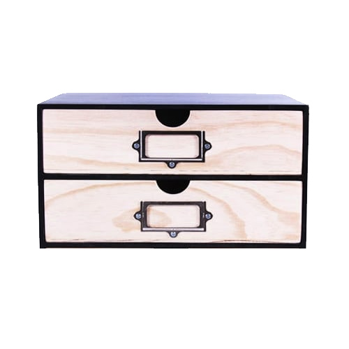 Use this lovely 2 drawer unit in your study or at work to keep things organised. Metal label holders help if you need to label the drawers and give it a more authentic appearance. Don’t confine this piece to your office though, it’s just as great storing jewellery and trinkets too. The 2 plywood drawers are neatly encased in an MDF painted black or white frame. The drawers are larger than A4 making it easy to file all sorts of documents safely. Label each drawer to be sure to find them when you need them.