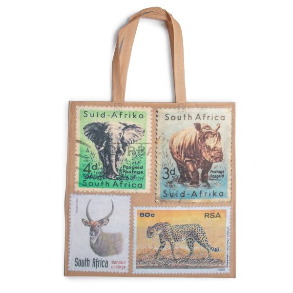 A touch of South African nostalgia with these old South African stamps adorning this portfolio bag. This recycled bag was once a plastic bottle and is perfect for just about anything. A gym bag, gift bag, a book bag and a shopping bag. It saves the environment and can be re-used by the recipient of your gift. You’ve practically stopped global warming by buying this bag. Made in South Africa.