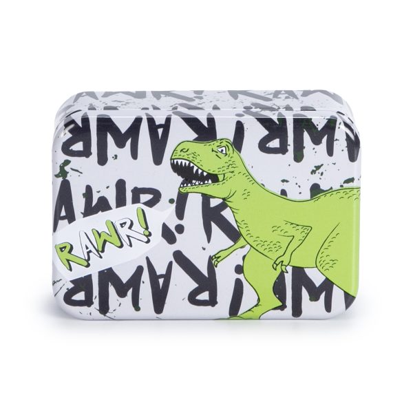 Our new streamline gift tin houses 30 excellent quality plasters printed with the word RAWR and a cool green dinosaur. It makes for a useful gift and a fun addition to your first aid kit. The kids will love them!