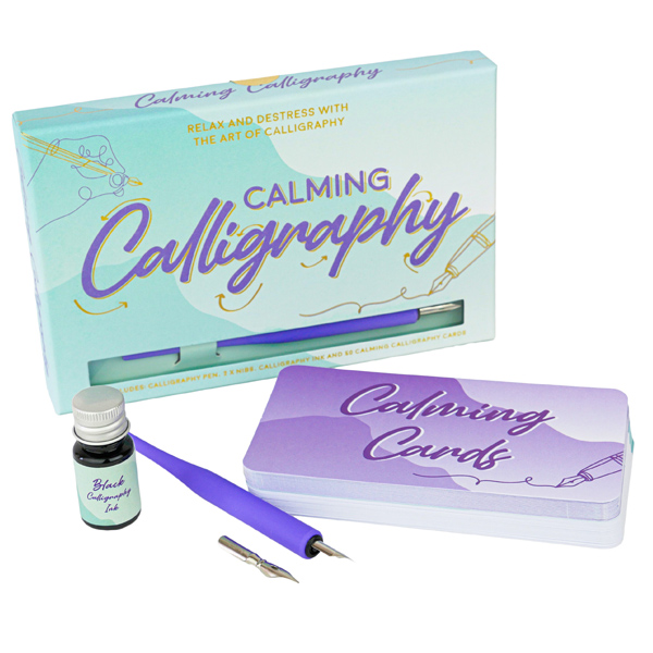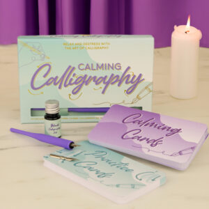 Take a moment to breathe and relax with this Calming Calligraphy kit. Trace inspiring quotes and stunning artwork while perfecting your upper and lowercase letters on practice cards. Unleash your artistic spirit and find tranquillity in each stroke! Box includes: 1x calligraphy pen, 2x pen nibs, calligraphy ink and 50x calligraphy cards.