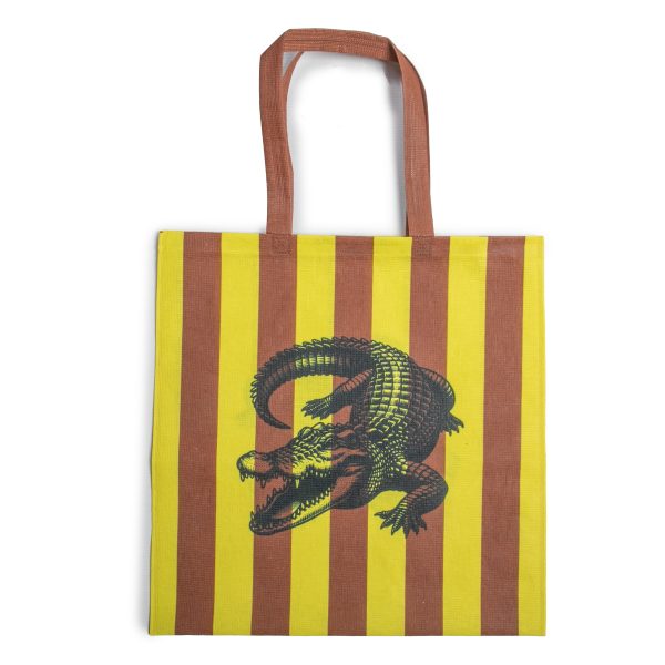 Not your average wildlife bag! This striking bag features a print of a crocodile overlaid with bold stripes.