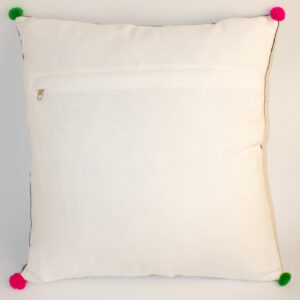 Bring a splash of joy to your space with this delightfully embroidered Lotus cushion. Crafted with intricate needlework that brings the iconic flower to life, it features a vibrant pom pom trim dancing along each corner in contrasting colours. The hidden zip closure keeps everything neat and tidy and easy to clean. Perfect for adding personality and comfort to any room.