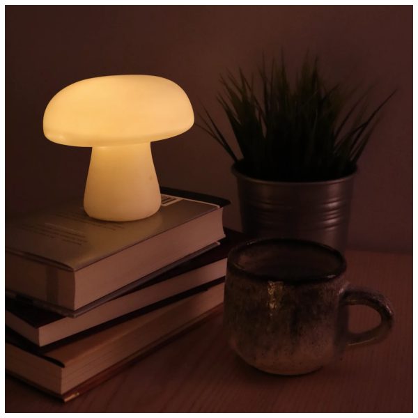 This mushroom-shaped porcelain light provides a lovely all-round, diffuse glow. Use it in the study, in your bedroom or kitchen. Clean with a damp cloth. Measures 12.7 x 13.3 x 12.7 cm