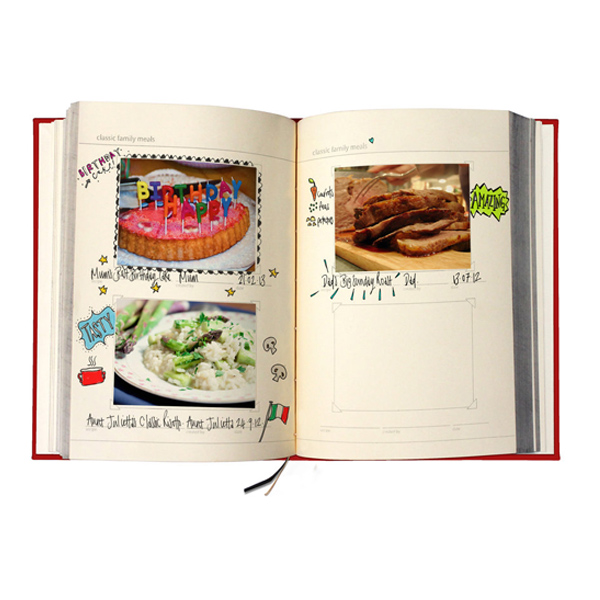 Create your own family cook book with this blank cook book designed for you to fill with memories, photos and recipes. Template pages with space for over 80 recipes. Includes an introduction with useful cooking guides and tips. Sections for photographs and clippings. Beautiful hardbound book with cloth covers. Heavyweight pages to withstand years of use.