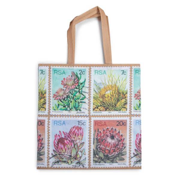 A touch of South African nostalgia with a collection of Protea stamps adorns this portfolio bag.