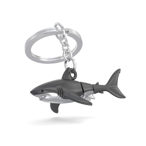 This 3D shark keyring features a detailed design, made possible by cutting-edge technology. Crafted from high-quality metal, this keyring is durable and long lasting. This premium quality keyring is manufactured from Zinc Alloy and coated with Matt Bullet and Shiny Chrome. Packaged in a great box too – Packaging quote: Never look back, always keep on swimming